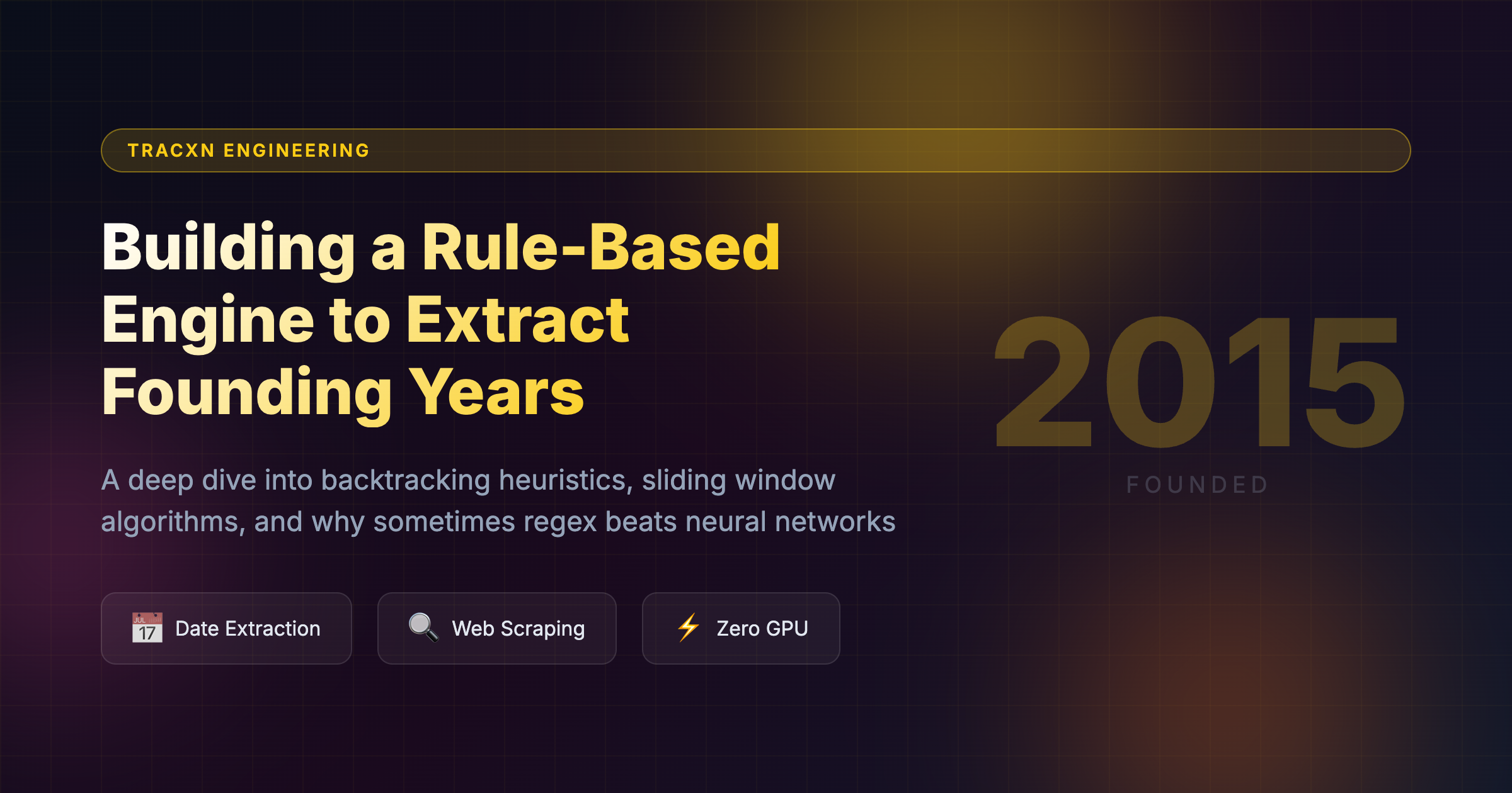 We applied the Min-Year Heuristic: In the context of a company history page, the earliest valid date associated with a “Birth Word” is almost always the founding date.